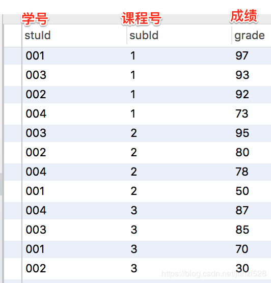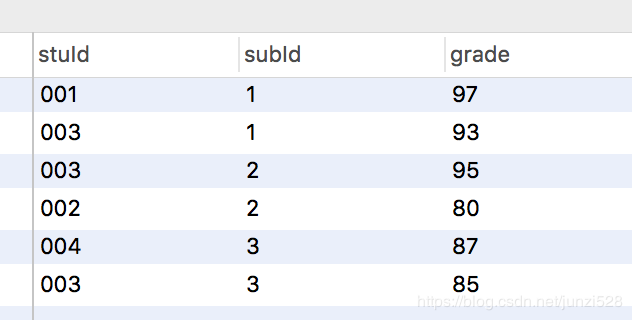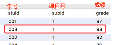 INSERT INTO StudentGrade(stuId,subId,grade) VALUES('003',2,95);
