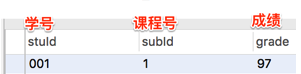 INSERT INTO StudentGrade(stuId,subId,grade) VALUES('001',1,97);